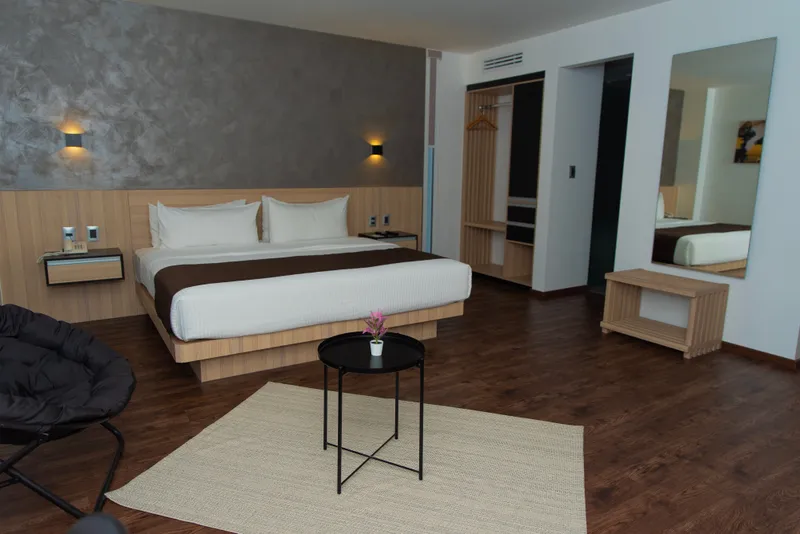 Large junior suite room with king bed, ideal for 2 people. It also has amenities that will make your stay a pleasant experience.